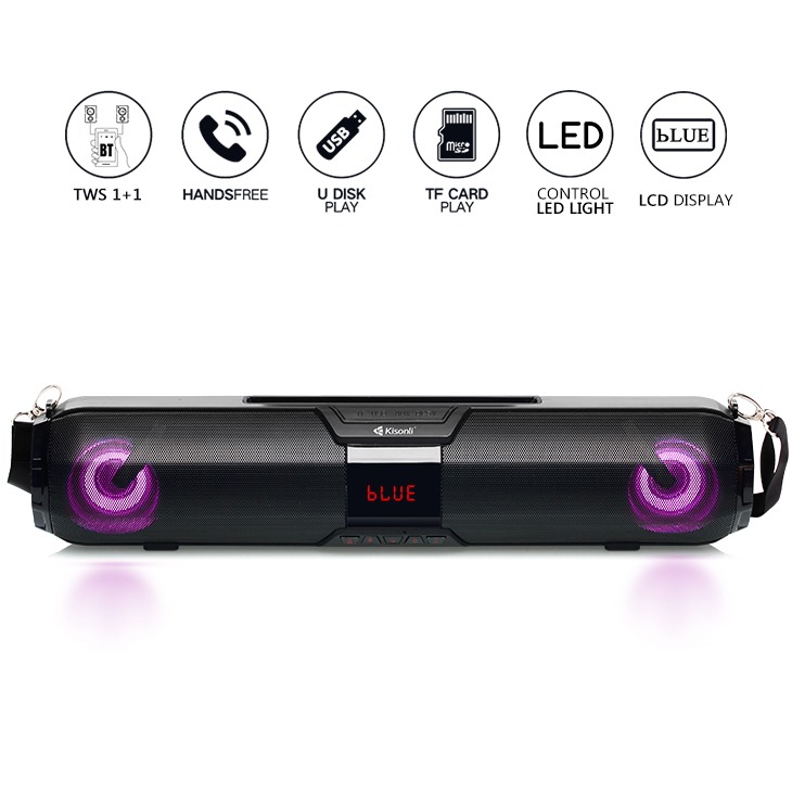 Kisonli LED-900 TWS Soundbar Bluetooth Speaker Connected At The Same Time 2 Speakers, LCD Screen Now (Random Color)